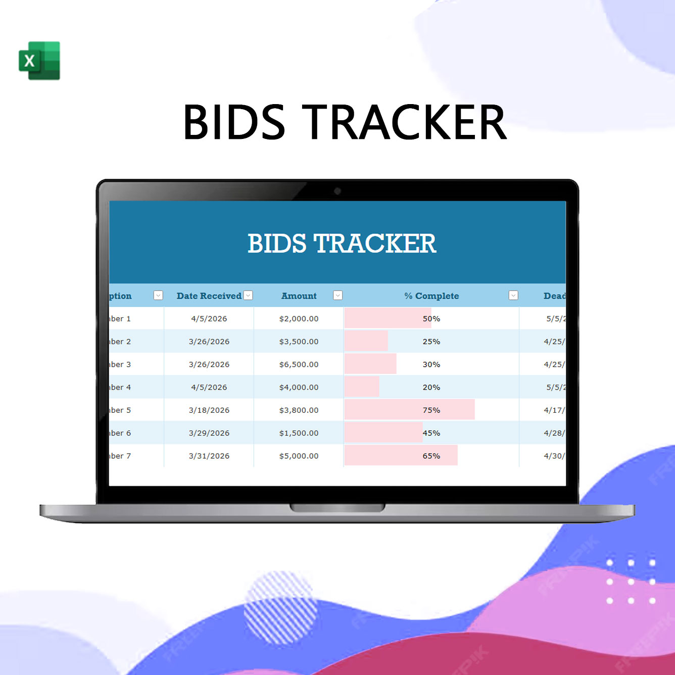 & Free ShippingStay ahead of the competition and organize your procurement or sales process with this robust Bids Tracker. Designed for contractors, freelancers, and sales teams, this Excel tool provides a centralized hub to monitor every proposal, deadline, and negotiation from initial inquiry to final contract.